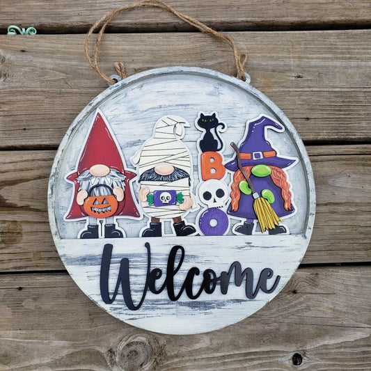 12" Welcome Halloween Gnomes Interchangeable Sign Inserts- Halloween Gnomes Fall Pumpkin Door Hanger