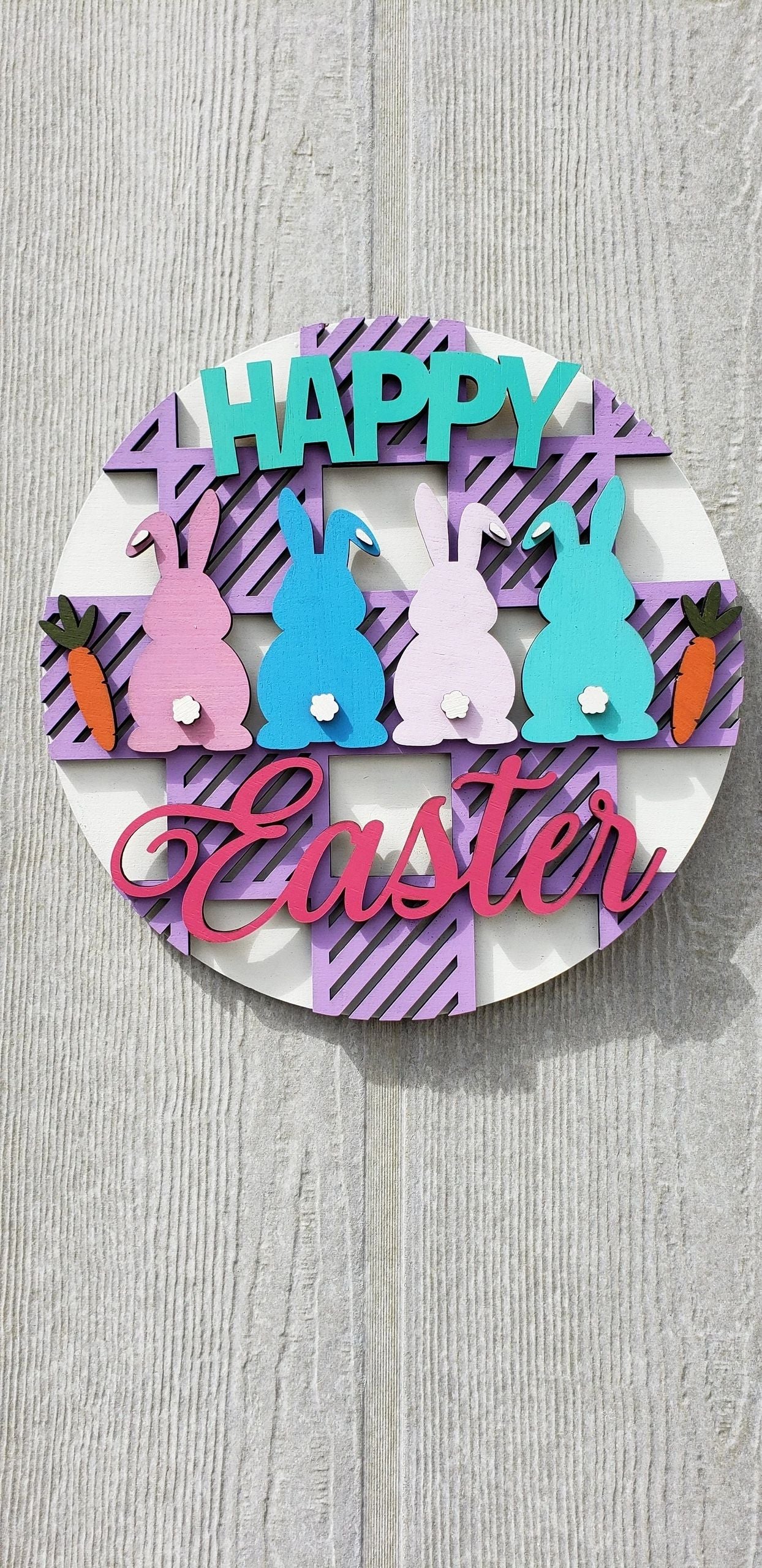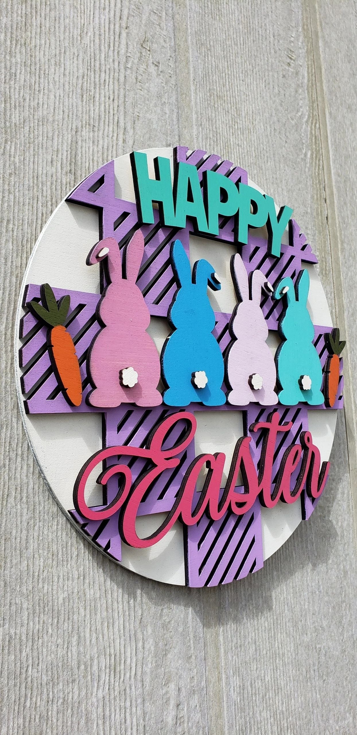 Super cute Easter sign that can be pre-painted OR ordered unfinished birch wood and unassembled kit.