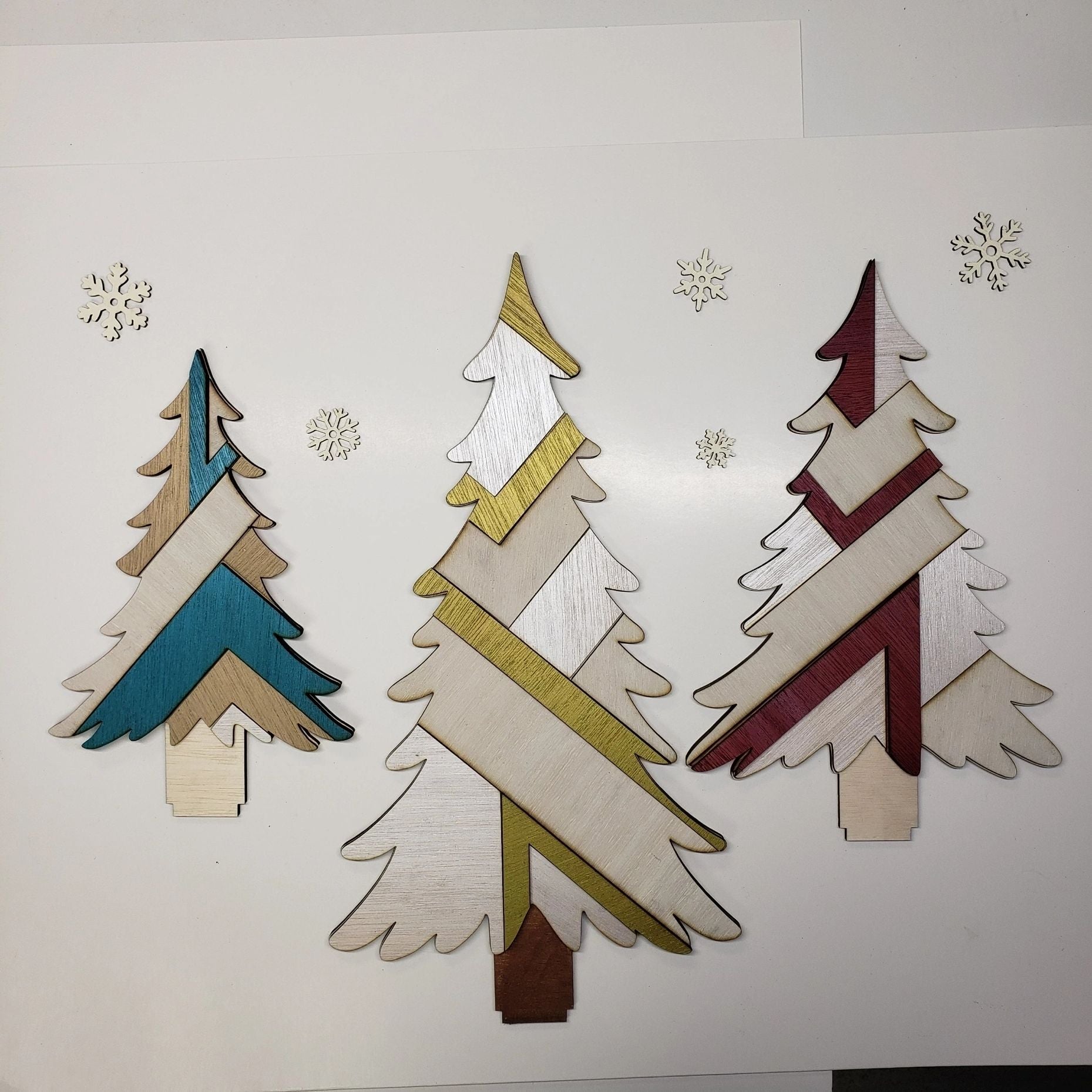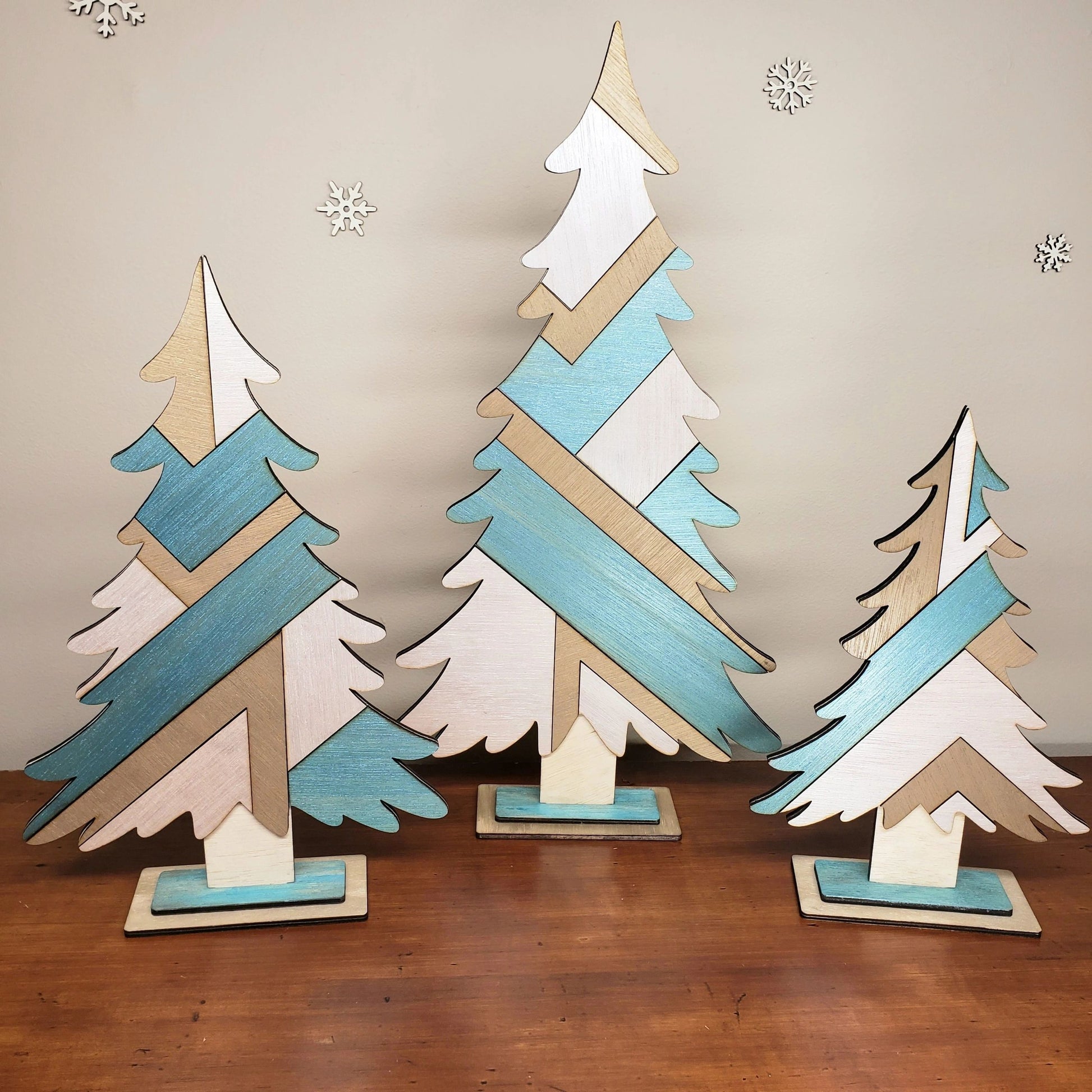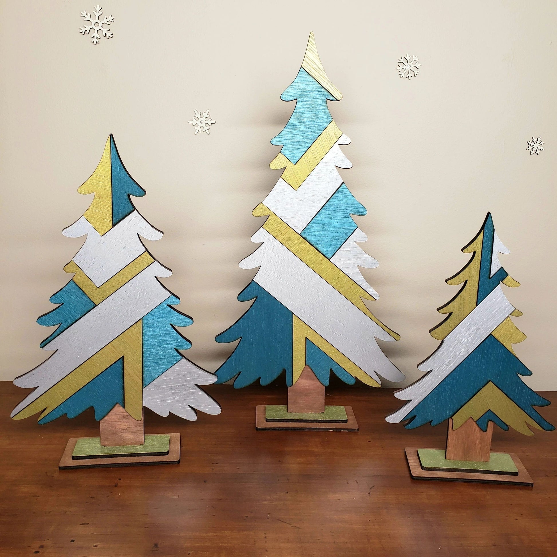 Buffalo Check Plaid Christmas Trees, Farmhouse Decor, Teal Christmas, Neutral Rustic Christmas Trees, Wooden Patchwork Trees, Pallet Trees, Barnwood Trees, Farmhouse Christmas Decor, Wooden Trees These beautiful Christmas trees will add some charm with the popular modern farmhouse standing trees. The wooden patchwork Christmas trees will look great with any decor, from farmhouse to modern to classic. There is a color combination that will suit your palette. Mix any three colors per tree. Order individual pieces or the entire set. You can mix and match sizes and color schemes for a customized set. The trees look great on your mantel, a shelf, or on a table. Mix with your other rustic decorations for that cozy rustic look. Each tree comes with a dual layer wood base. You may need to slide the tree into the base. The trees measure Small 11.5" x 7" Medium 14" x 8.75" Large 18.25x 9.75" Stands measure 5 x 2.3" Each piece is individually stained and put together. Color choices include: Black Black Wash White Ivory White Metallic Silver Metallic Titanium Gold Metallic Topaz Metallic Peacock Metallic Emerald Metallic Festive Green Metallic Gold Green Metallic Cranberry Wash Red Metallic Walnut Oak Black White Buffalo Plaid They will ship flat to protect them in transit. All you have to do it slip them in their slot.