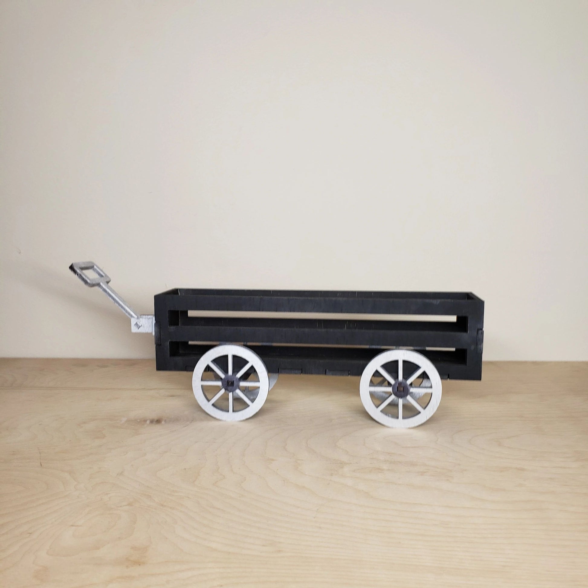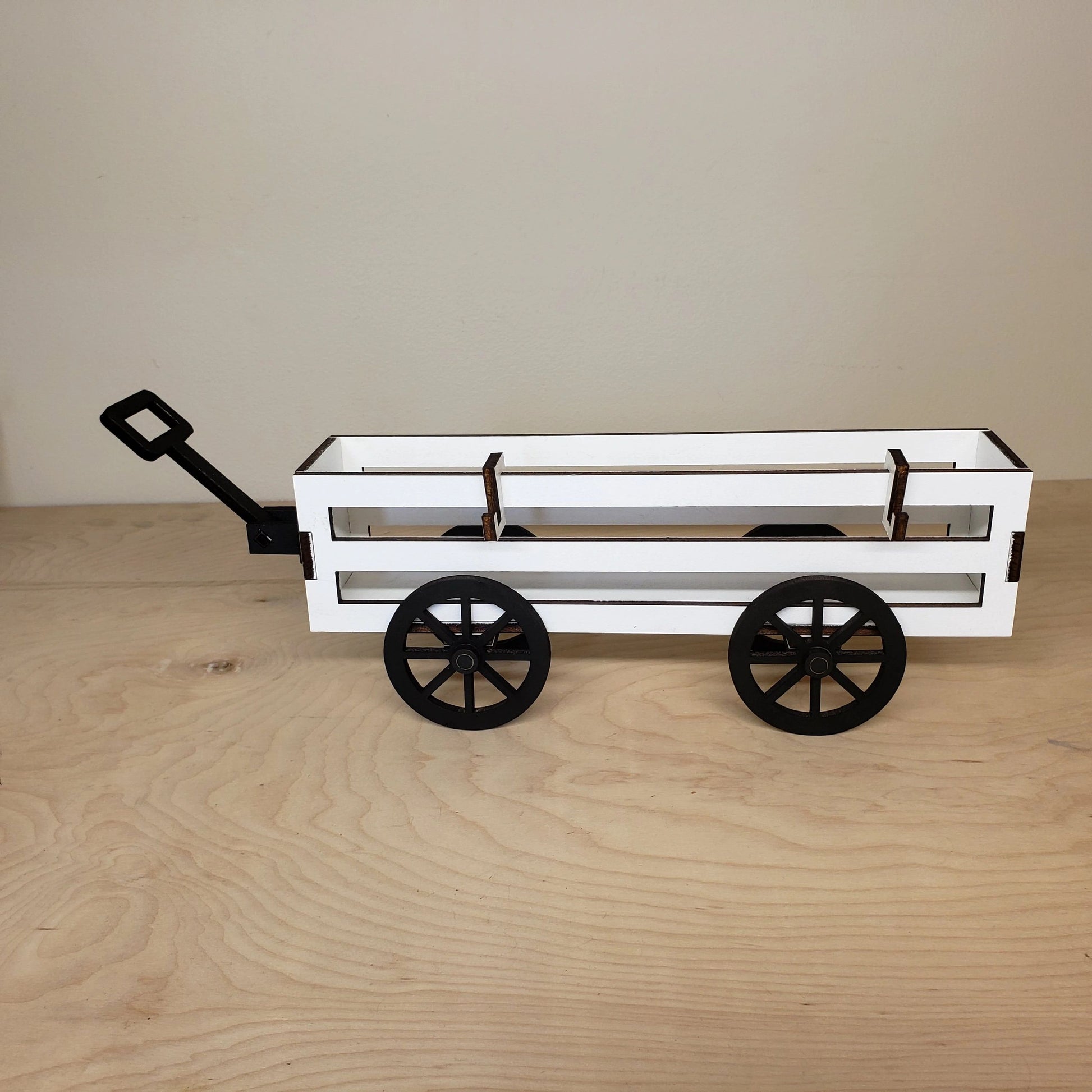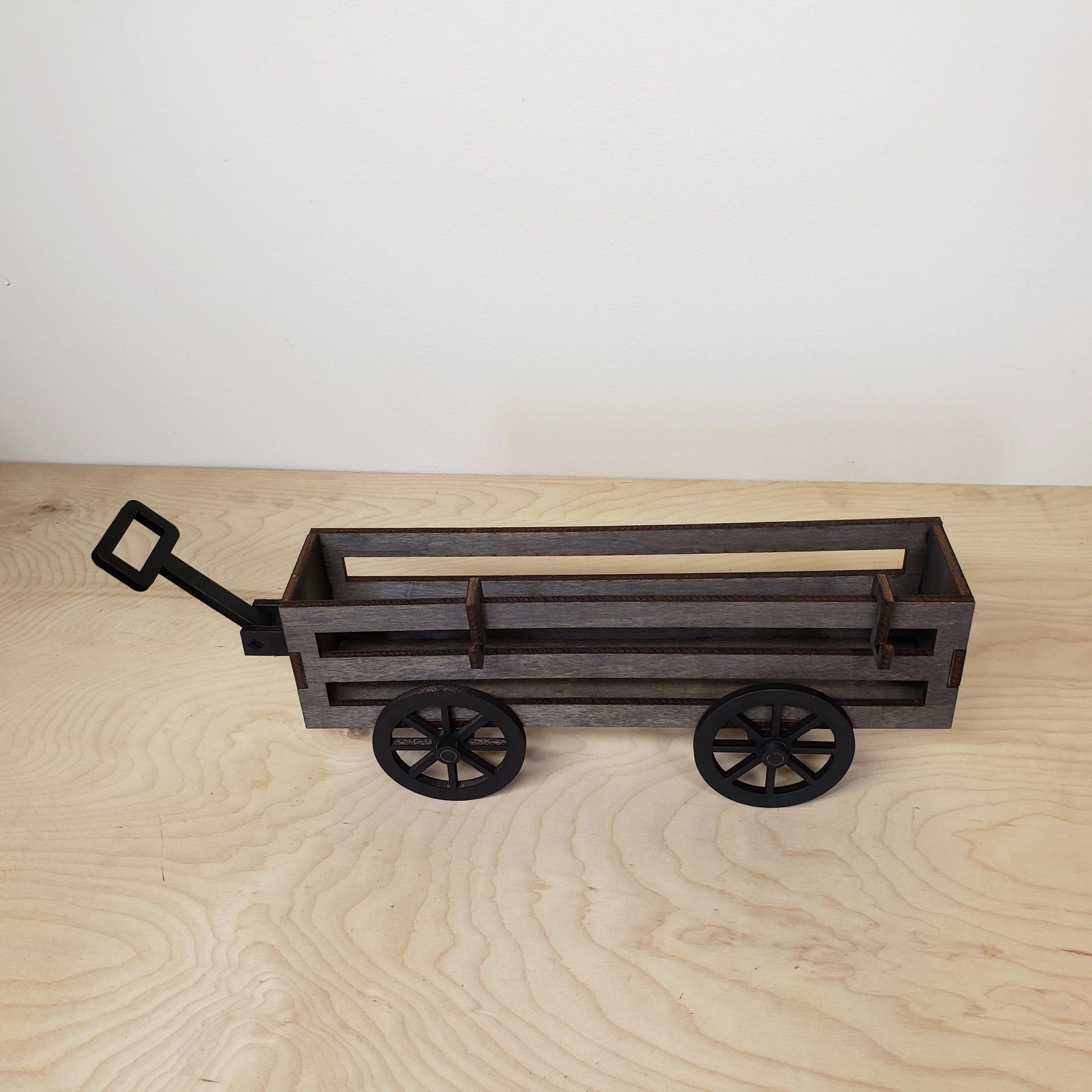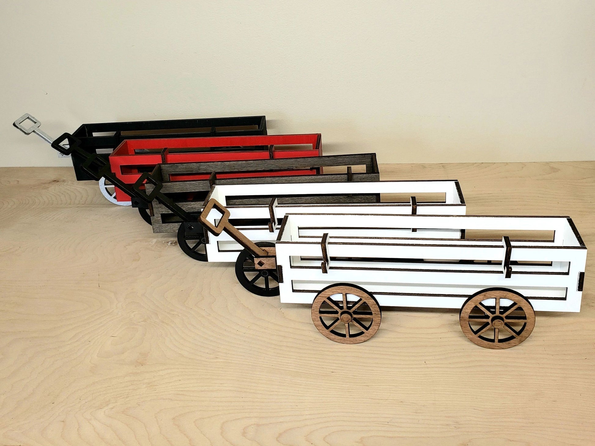 Rustic Wood Wagon for Interchangeable Wagon Inserts or Any Home Decor This is the NEW style of Rustic Wood Wagons. These are fantastic alone or with any of the wagon inserts sets available in my shop. You can also add your own pieces for a truly unique look. The wagons are laser cut from 1/4" birch wood. Each wagon is hand painted or stained. The wagons measure 13 x 4 x 2.5". The interior crate part of the wagon measures 10" long and 1 7/8" wide.